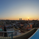 outdoor, sunrise, hotel pool, urban area, high above, rooftops