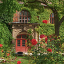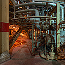 abandoned and burned out factory, daylight, plants, high walls, remastered, Halle