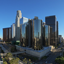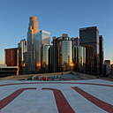 outdoor, sunset, evening, cloudy, Los Angeles, skyline, high up, park, sandy, colorful, purple