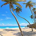 outdoor, sunset, golden hour, sandy, beach, nice clouds, treeline, Barbados