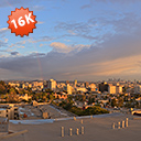outdoor, sunset, 16K, evening, cloudy, Los Angeles, skyline, high up, park, sandy, colorful, purple, Hollywood